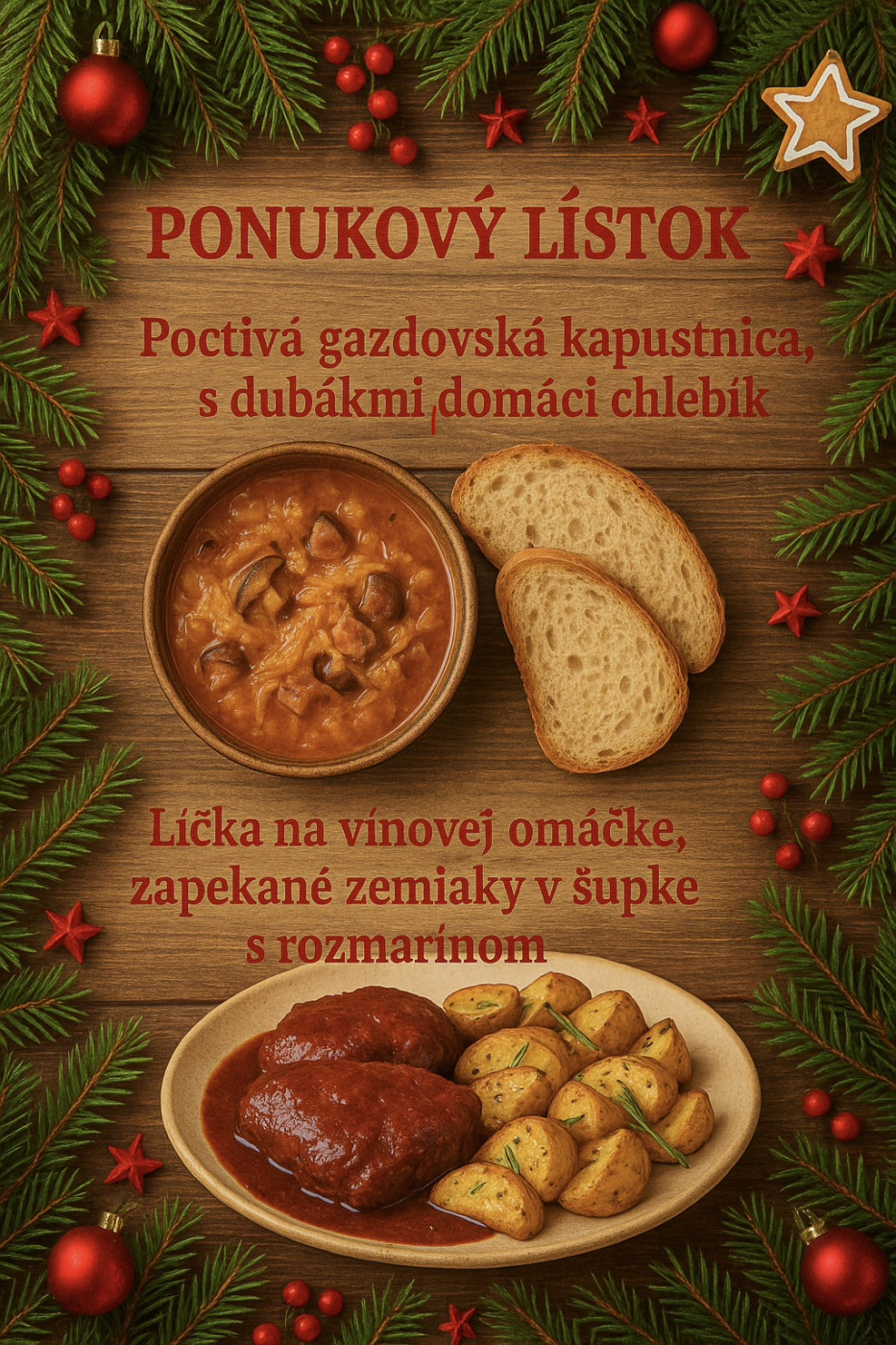 1.Obiliny /lepok/, 2.Kôrovce, 3.Vajcia, 4.Ryby, 5.Arašidý, 6.Sójové zrná, 7.Mlieko, 8.Orechy, 9.Zeler, 10.Horčica, 11.Sezam Menu sa rozváža od 11:00 - 14:00 Na menu sa nevzťahujú žiadne zľavy